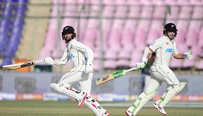 New Zealand openers Devon Conway and Tom Latham blunted Pakistan bowlers to monitor their side to a solid 165 without loss at close on the second day of the first Test in Karachi on Tuesday.